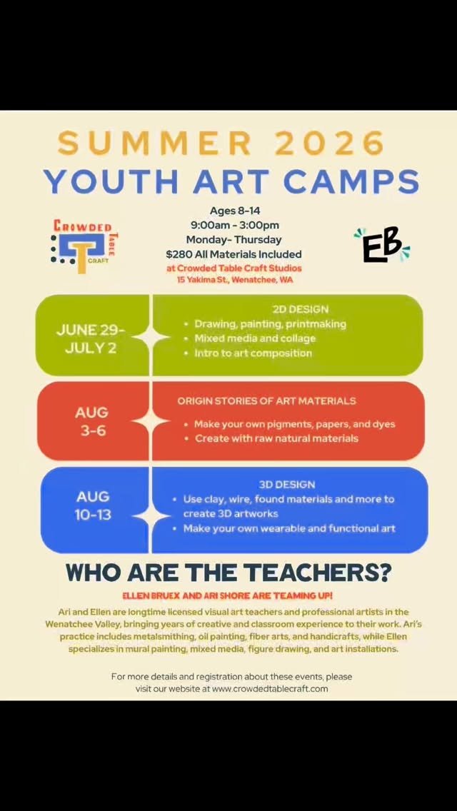 This camp invites curiosity, patience, and hands-on discovery. Students won’t just make art, they’ll make the materials themselves, learning the history, ecology, and care behind each process.